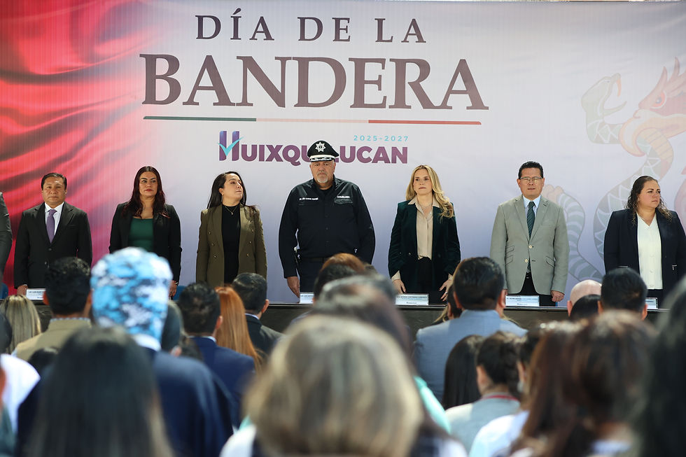 Huixquilucan, Edomex.- En el marco de la conmemoración del Día de la Bandera, el Gobierno de Huixquilucan refrendó su compromiso con la legalidad, la seguridad y el fortalecimiento institucional, al convocar a la ciudadanía a cerrar filas en torno al Estado de Derecho y al trabajo coordinado entre órdenes de gobierno.